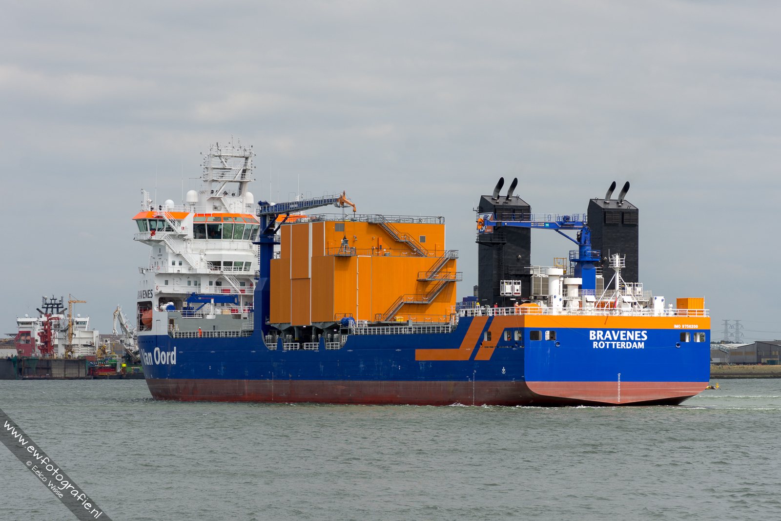De Bravenes op de Westerschelde. Foto genomen op 12 augustus 2018. Op weg naar de sloehaven te Vlissingen-Oost.
