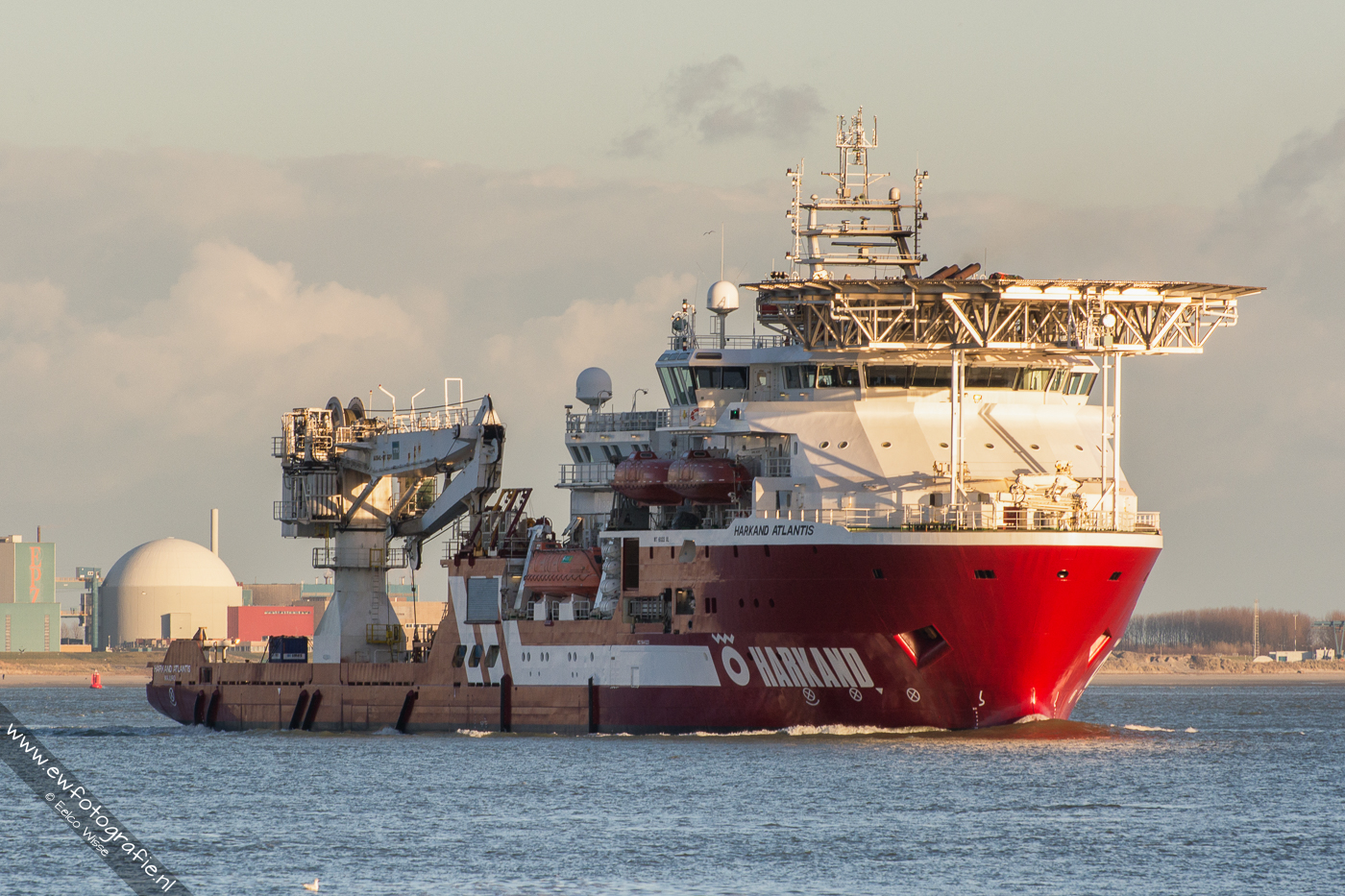 De Harkand Altantis op de Westerschelde vertrekkend naar zee.
