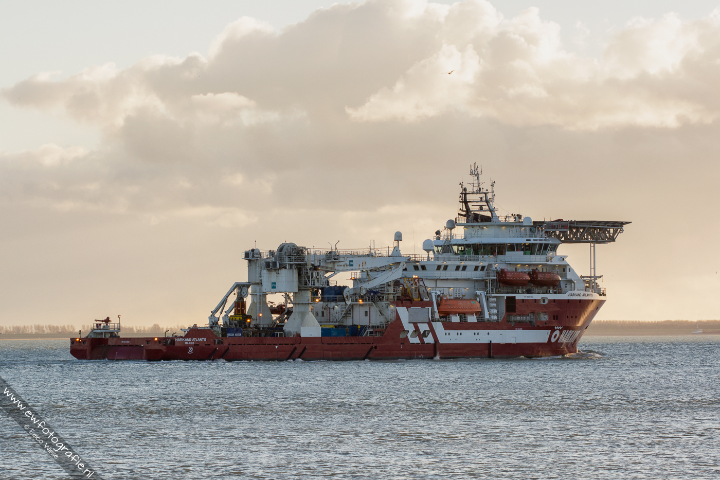 De Harkand Altantis op de Westerschelde vertrekkend naar zee.
