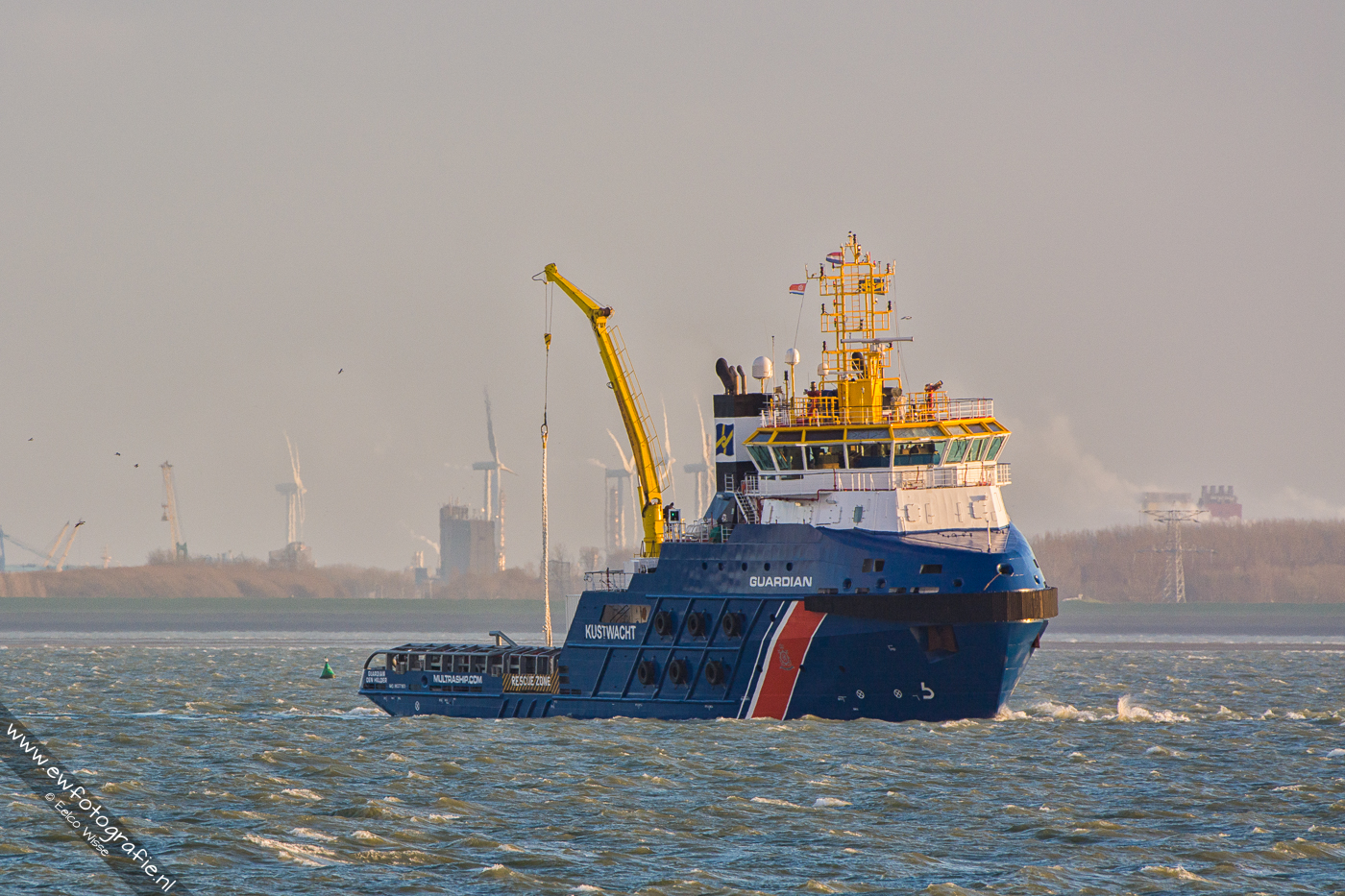 De Guardian van de kustwacht op de Westerschelde. Foto genomen op 2 februari 2016.
